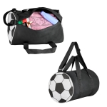 Maleta con print de balón en los laterales, compartimento principal, cierre, asas y correa ajustable.