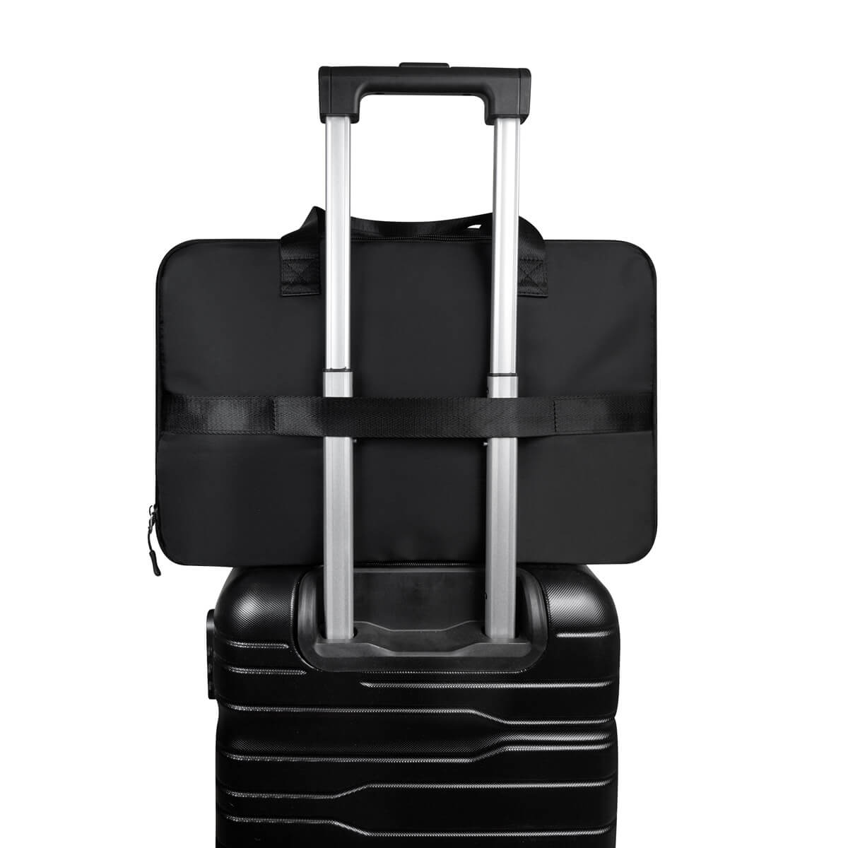 Maleta con compartimento expandible para ampliar su capacidad según tus necesidades. Incluye un compartimento principal con bolsillo para llevar objetos pequeños. Un segundo compartimento con cierre para expandir o contraer y broche elástico para mantener tu ropa y accesorios fijos en todo momento. Agrega también un bolsillo frontal con cierre y dos bolsillos laterales. Su correa para hombro es ajustable y removible, gracias a sus broches de plástico. En la parte posterior incluye banda para llevar en trolley.