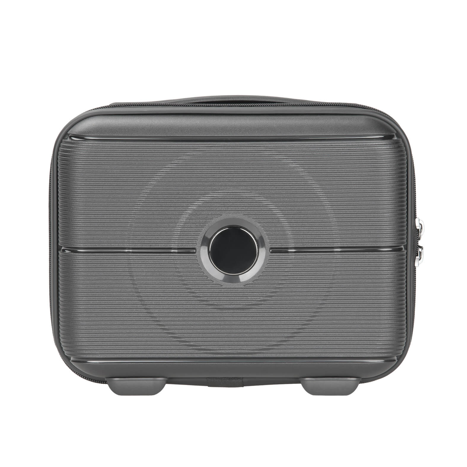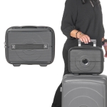 Maleta de viaje de plástico con compartimento principal con cierre, banda elástica, candado de seguridad, asa y banda carry-on.