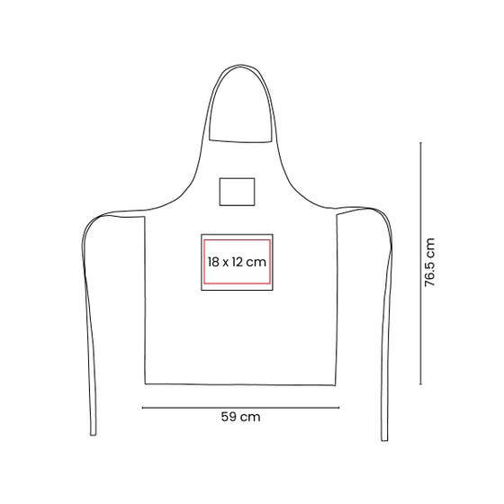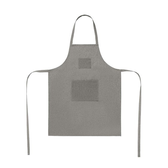 Mandil de algodón reciclado. Su diseño incluye correa ajustable y 2 bolsas frontales. Gracias a sus materiales sostenibles, este mandil combina estilo y responsabilidad ambiental, ofreciéndote una opción ecológica.
