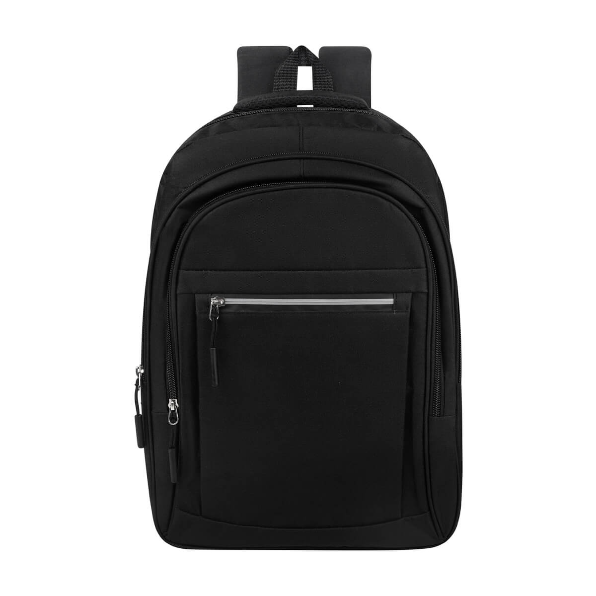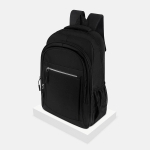 Mochila escolar ligera y espaciosa, con tres compartimentos amplios. El compartimento principal es para laptop de hasta 15″ . cuenta con dos compartimentos adicionales para mayor organización. En la parte frontal, tiene un bolsillo con cierre y una tira reflejante, además de 2 bolsas laterales de malla y dos tirantes acojinados ajustables, para mayor comodidad.