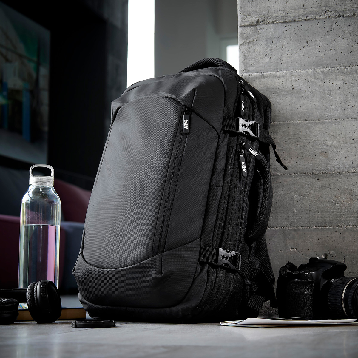 Mochila ideal para viajes, con amplios espacios de almacenamiento. Cuenta con un compartimento acolchado para laptop de hasta 16″. Capacidad desplegable para adaptarse a tus necesidades, utiliza cierre para expandir y broches laterales para ajustar a la medida que más te convenga. El compartimento central, incluye un broche cruzado, tipo maleta, para mantener ropa o pertenencias fijas. Dispone de una agarradera superior y una lateral, que permiten trasladarla de manera versátil. Sus asas acolchadas, garantizan comodidad durante todo el día, además, incluye una banda en la parte posterior que facilita su transporte en trolley.