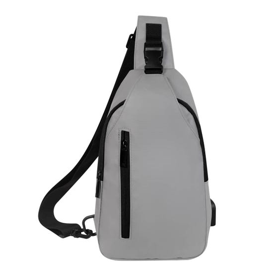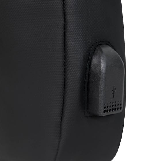 Mochila de viaje fabricada con material de curpiel que la hace suave al tacto. Equipada con un puerto USB y cable incluido, puedes conectar tu smartphone a una batería auxiliar (no incluida) mientras te desplazas. Su compartimento principal con cremallera y broche de plástico aseguran tus pertenencias, además de contar con una bolsa pequeña interna para organizar mejor tus objetos. El bolsillo frontal con cierre es perfecto para guardar lo esencial. Adicional, incluye correa de hombro ajustable, gracias a su broche puedes elegir usarlo del lado derecho o izquierdo, ofreciendo un transporte cómodo. Compacta pero sorprendentemente espaciosa, esta mochila es ideal para llevar todos tus documentos de viaje esenciales, como pasaporte, boletos y tarjetas, manteniéndolos organizados y a tu alcance en todo momento.