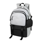 Mochila estilo casual. Incluye monedero desmontable. Su compartimento principal cuenta con un separador especial para laptop de hasta 15″. Al frente, incluye un bolsillo amplio con cierre y adicional, dos bolsillos pequeños ideales para llevar artículos esenciales. Su detalle de broches al frente, permite mantener seguras tus pertenencias y le agregan un toque de estilo. Cuenta con un bolsillo en cada costado, para llevar una botella de agua o incluso un paraguas. Además, sus cintas ajustables para reducir o expandir el tamaño y adecuarlo a tus necesidades. En la parte trasera, cuenta con un bolsillo invisible de seguridad, que mantendrá seguros tus objetos de valor. Adicional, cuenta con banda para trolley que facilitará llevarla contigo durate tus viajes.