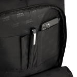 Mochila portanotebook de hasta 16 pulgadas. Cuenta con tres compartimentos: Compartimento posterior con bolsillo acolchado portanotebook con cierre de velcro. Amplio compartimento principal con bolsillo con cierre horizontal y bolsillo elastizado de red. Compartimento frontal con múltiples bolsillos para accesorios y bolsillo con cierre horizontal. Asa superior reforzada. Correas ajustables y respaldo acolchados. Tira para sujetar la mochila en la manija extensible de un equipaje de mano y bolsillo de seguridad con cierre. Tiradores de cierres metálicos.