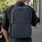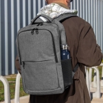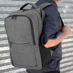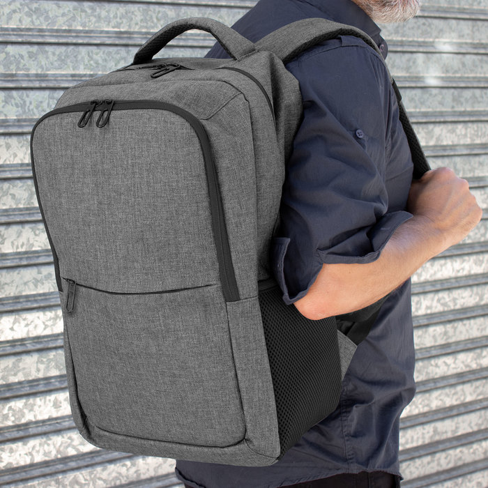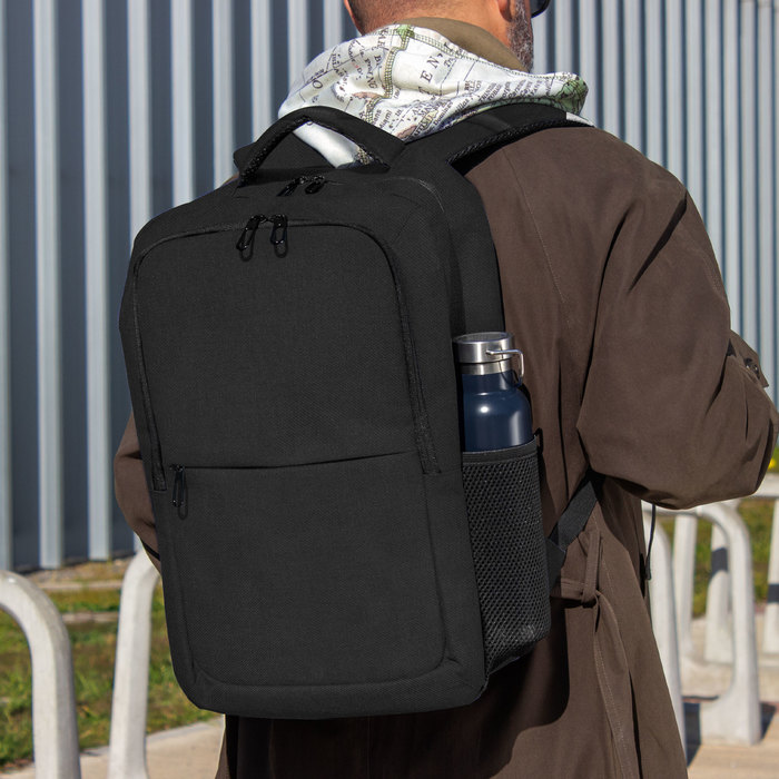Mochila portanotebook de hasta 16 pulgadas. Cuenta con dos compartimentos, el compartimento principal con bolsillo acolchado para la notebook y bolsillo organizador. frente con bolsillo horizontal con cierre y 2 bolsillos laterales de malla porta botellas y accesorios. Asa superior, correas y respaldo acolchados. Correas ajustables. Tira para sujetar la mochila en la manija extensible de un equipaje de mano. Tiradores de cierres metálicos color negro.