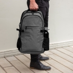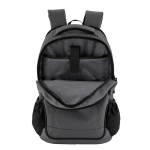 Mochila urbana portanotebook de hasta 16 pulgadas. Compartimento principal con cierre, interior con 2 bolsillos, bolsillo porta notebook acolchado y elástico de seguridad y bolsillo porta tablet de hasta 11 pulgadas. Compartimento frontal con cierre, exterior con cierre horizontal, interior con bolsillos organizadores. 2 bolsillos laterales de tela elastizada color negro. 2 correas de hebillas ajustables al volúmen que se traslade. Asa acolchada y reforzada. Espalda acolchada con red que permite ventilación. Tiradores de cierre metálicos.