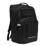Mochila portanotebook de hasta 16 pulgadas. Cuenta con tres compartimentos: Compartimento posterior con bolsillo acolchado portanotebook con cierre de velcro y bolsillo plano. Amplio compartimento principal con bolsillo externo con cierre horizontal afelpado portagafas. Compartimento frontal con múltiples bolsillos para accesorios y mosquetón plástico portallaves en su interior, exterior con detalle en poliuretano y ribete reflectante, cierre impermeable vertical y gancho porta accesorios. Dos bolsillos laterales portabotellas o accesorios. Asa superior reforzada. Correas ajustables y respaldo acolchados. Tira para sujetar la mochila en la manija extensible de un equipaje de mano. Tiradores de cierres metálicos.