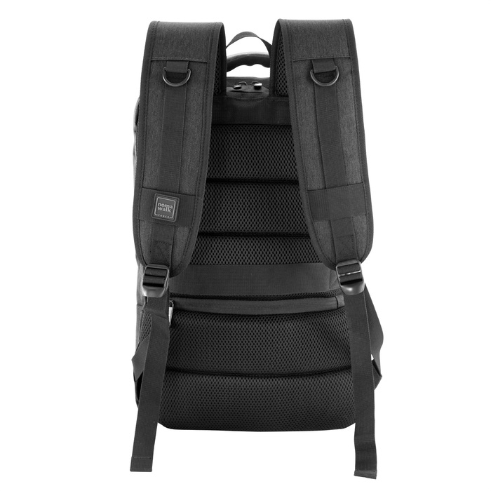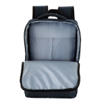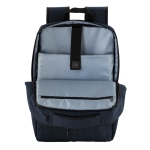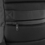 Mochila portanotebook de hasta 16 pulgadas. Cuenta con dos compartimentos: Compartimento posterior con cierre, bolsillo portanotebook de hasta 16 pulgadas con tira de seguridad con cierre de velcro y bolsillo plano con cierre . Compartimento frontal, exterior con bolsillo con cierre horizontal y bolsillo vertical con cierre impermeable, interior con bolsillos organizadores y un bolsillo de red. Asa acolchada y reforzada para mejor traslado. Espalda acolchada con red que permite ventilación. Tira para sujetar la mochila en la manija extensible de un equipaje de mano y bolsillo de seguridad con cierre. Correas acolchadas. Tiradores de cierre metálicos.