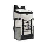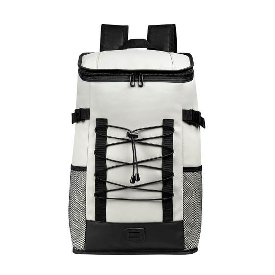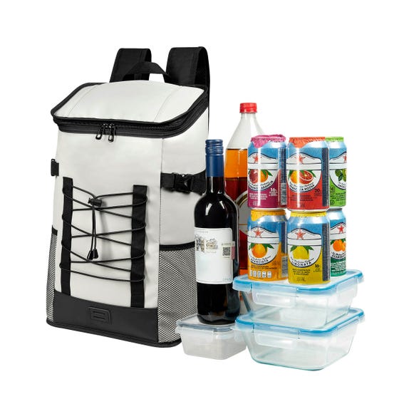 Hielera con función de mochila, con interior plastificado impermeable. Espacioso compartimento principal con cierre, pequeño bolsillo con cierre en la parte superior y 2 bolsillos laterales de red. Al frente, incluye elástico ajustable para llevar accesorios adicionales. En la parte posterior cuenta con asas de mochila ajustables, espalda acojinada para mayor comodidad y banda que facilita su transporte en trolley. Ideal para una tarde en la playa, pesca o senderismo. Capacidad para 24 latas.