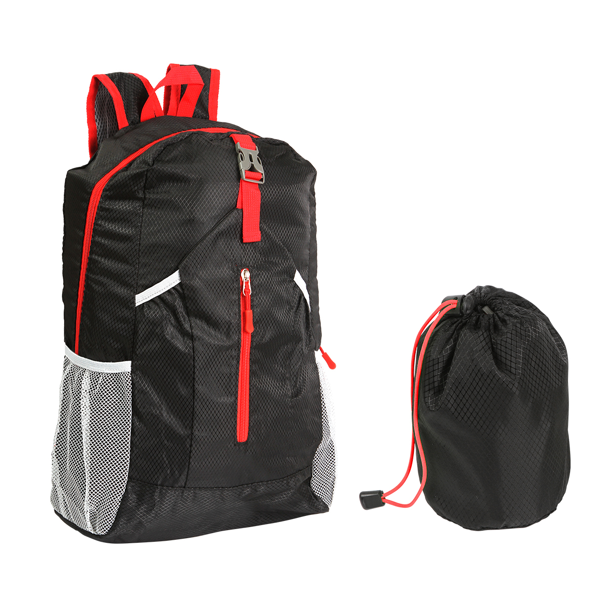 Mochila que se compacta, fabricada en nylon, ligera, con bolsa de almacenamiento, fácil de transportar. Tratamiento superficial con repelente al agua, ideal para viajes al aire libre. Correas portátiles de alta densidad para un uso flexible. Correas de hombro transpirables para aliviar la fatiga. Capacidad: 24 L