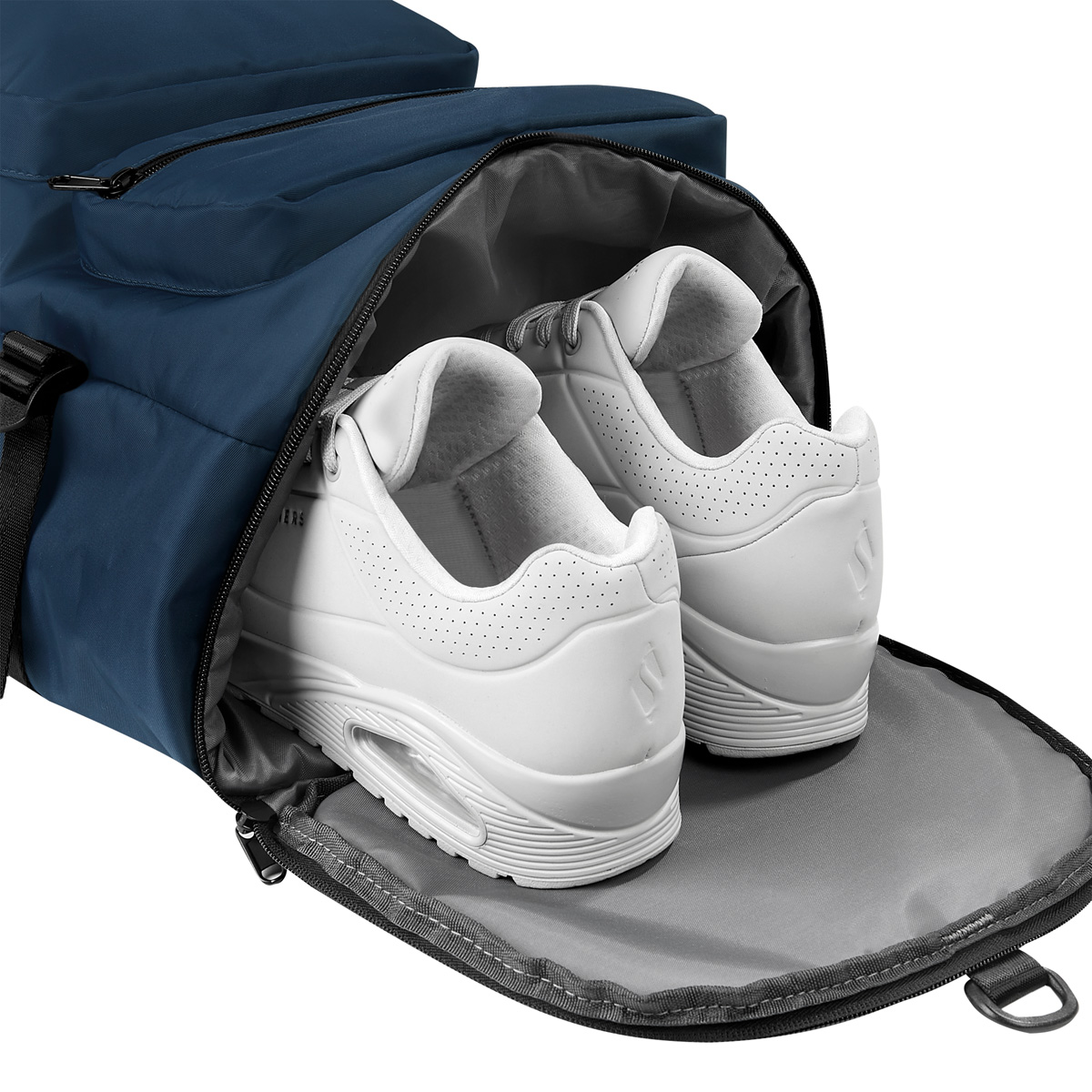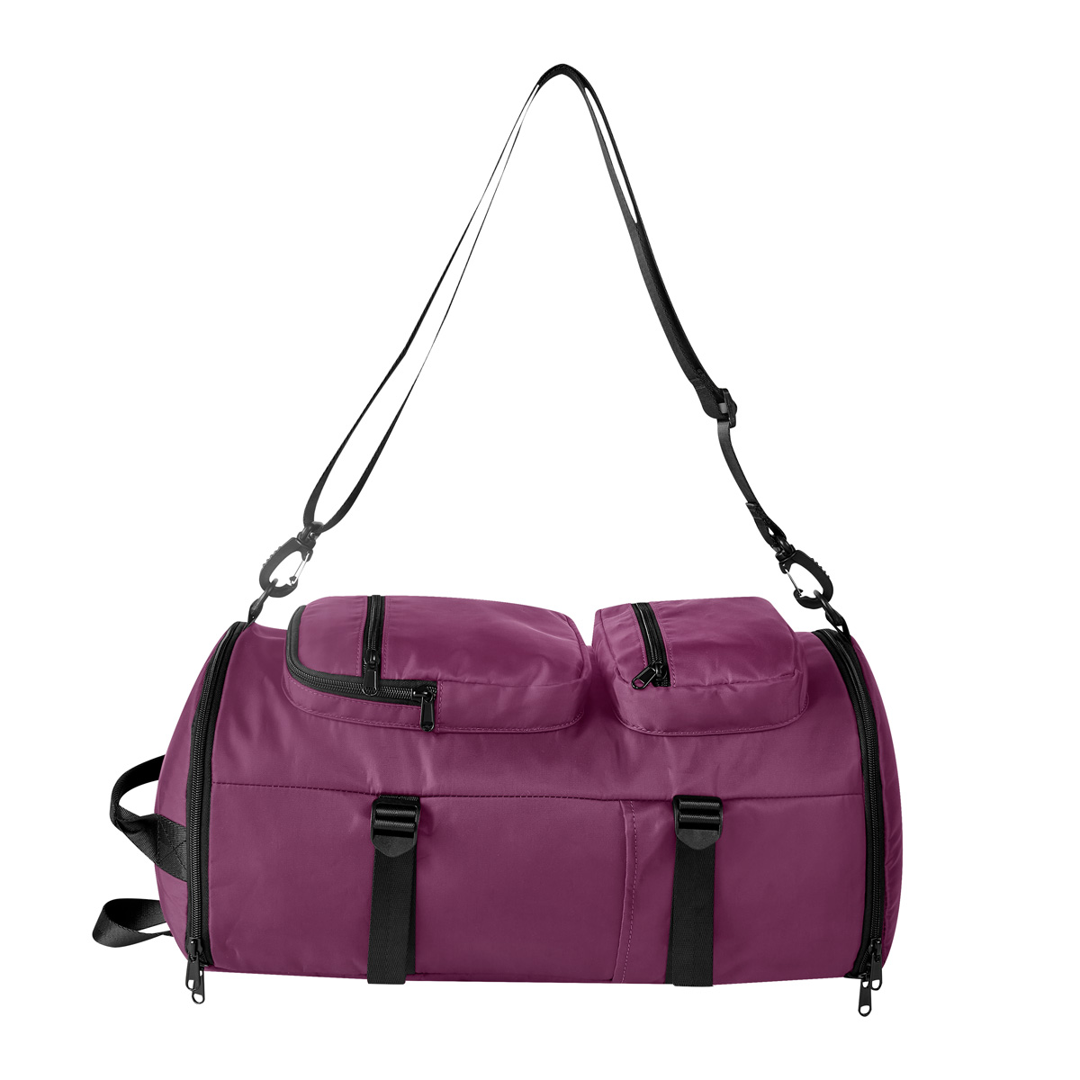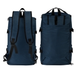 Mochila con función de maleta. Bolsa principal con cierre. Compartimento interno para laptop de 17″. Bolsillo interior resistente al agua, bolsillo inferior con espacio y cierre para calzado. 2 bolsillos laterales. Compartimento trasero para ocultar asas. Incluye broches laterales para ajustar el tamaño, además de una correa removible para usar como maleta. Sus multiples espacios, permiten organizar mejor tus objetos personales. Ideal para utilizarla en viajes cortos o en el gimnasio.