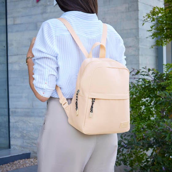 Mochila estilo casual. Cuenta con un compartimiento principal y un bolsillo frontal, ambos con cierre y puller de cordón que facilitan su uso. Las asas, suaves al tacto, ofrecen comodidad tanto en mano como en hombro. Pequeña en tamaño pero grande en estilo, esta Mini Backpack combina materiales suaves al tacto con un diseño funcional, convirtiéndola en la alidada perfecta para tus aventuras diarias.