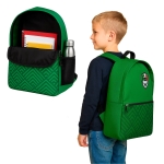 Mochila con compartimento principal, bolsa frontal con cierre, tirantes ajustables, malla lateral y asa superior