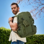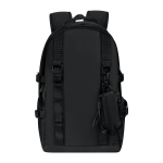 Mochila de viaje con diseño deportivo. Su bolsillo principal con cierre incluye un compartimento para laptop de hasta 15’’ y un bolsillo de malla para organizar tus accesorios. En su exterior, agrega un amplio bolsillo frontal y dos bolsillos laterales. Su práctico diseño permite colgar diferentes accesorios, gracias a sus correas frontales, además incluye un mini estuche removible. En la parte posterior, su respaldo acoginado ayuda a tener mayor comodidad y poder llevarla contigo en largas jornadas.