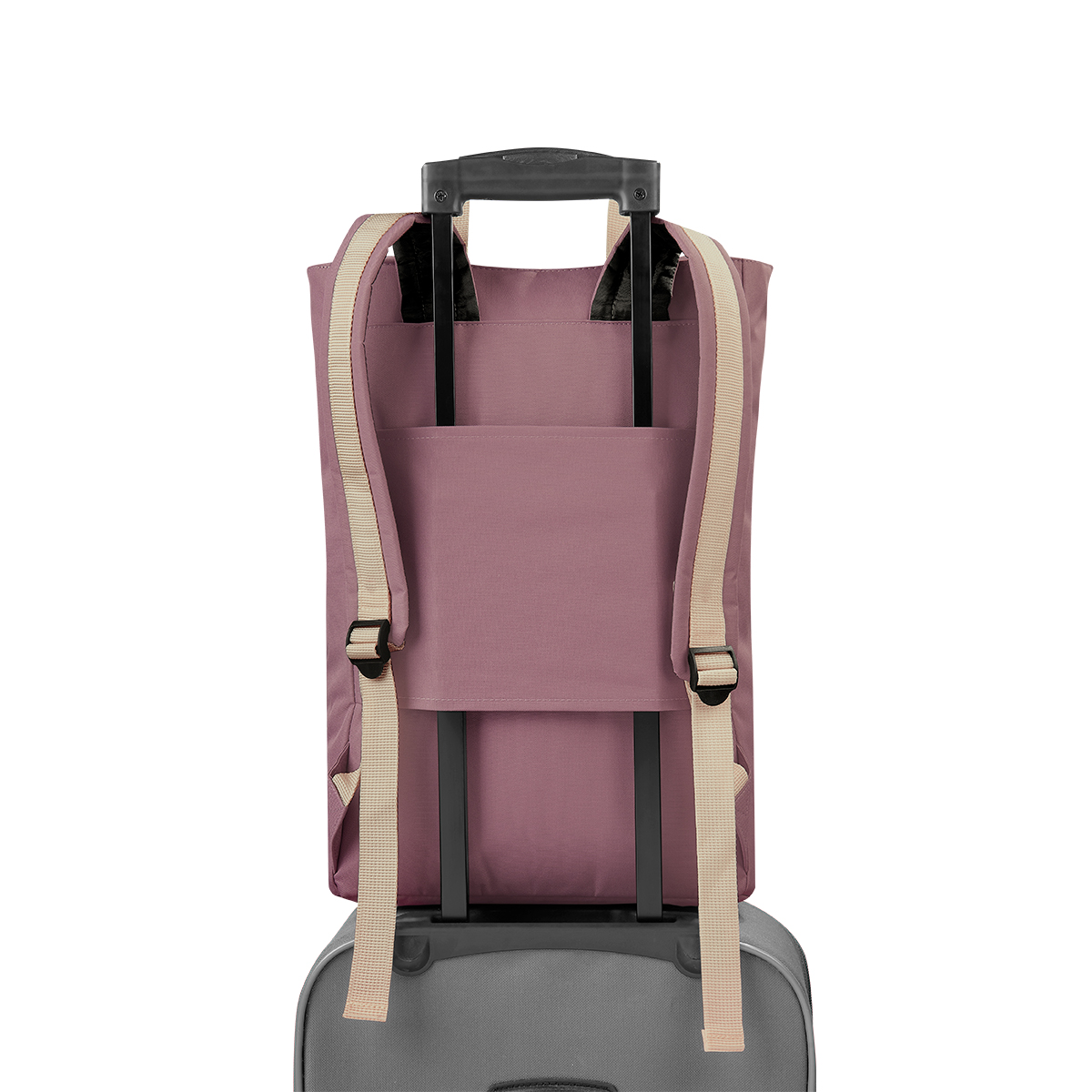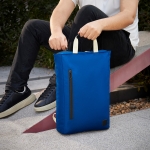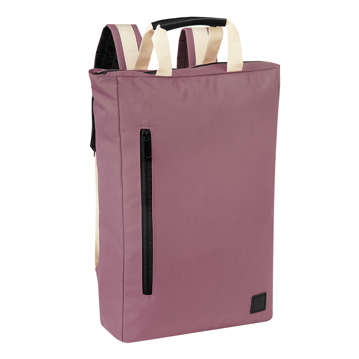 Mochila estilo casual. Compartimento principal con cierre y separador para laptop de hasta 14». En la parte frontal dispone de un bolsillo con cierre vertical que lo hace funcional para llevar accesorios más pequeños y además le aporta un toque de diseño. Incluye dos asas superiores con recubrimiento de curpiel para mayor comodidad en su transportación. Cuenta con asas ajustables para hombro y banda trasera para utilizar en trolley, también funciona para guardar sus asas y utilizar como bolsa.
