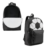 Mochila tipo back pack conprint de balón, bolsa principal, bolsa frontal de cierre, asa superior y correas ajustables.