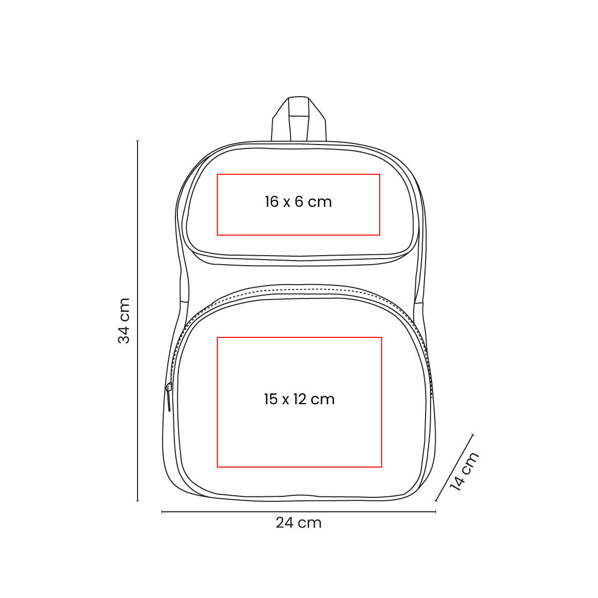 Área de impresión: 16 x 6 cm (bolsa superior) /15 x 12 cm (bolsa inferior)