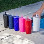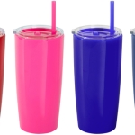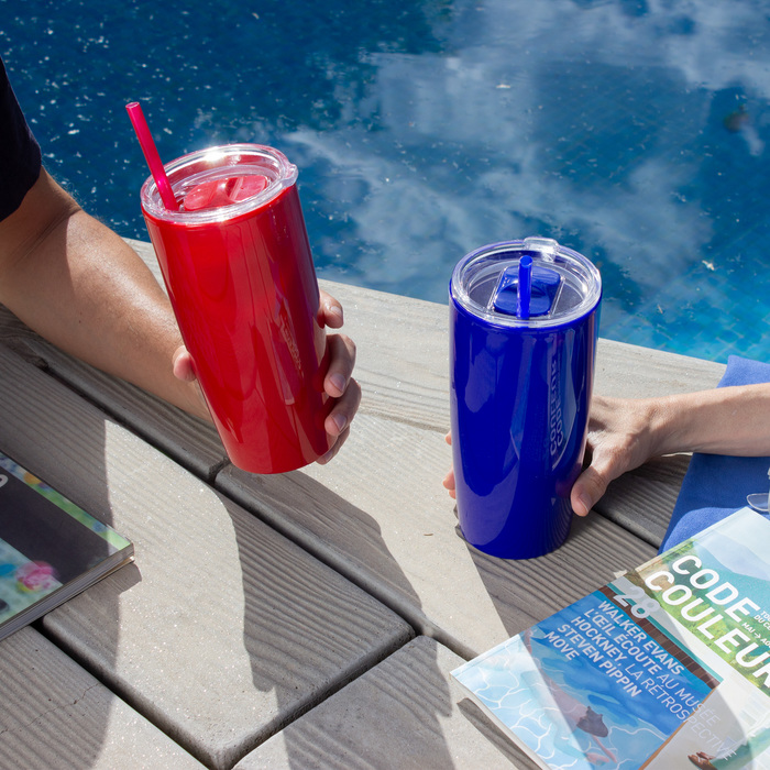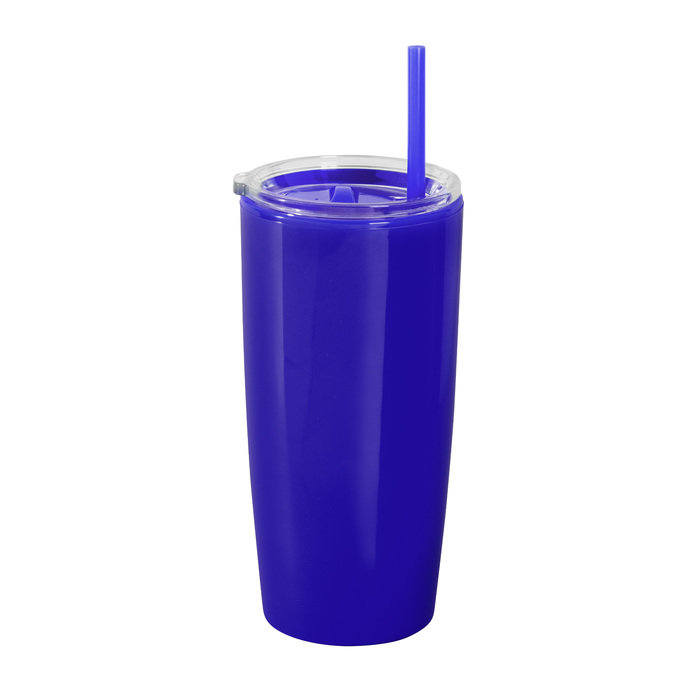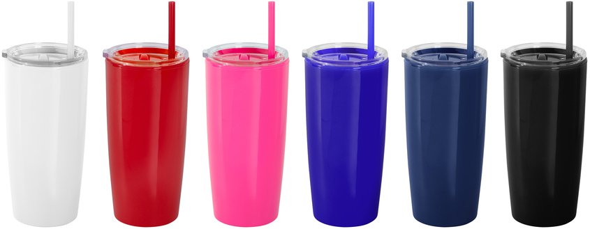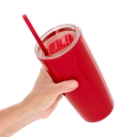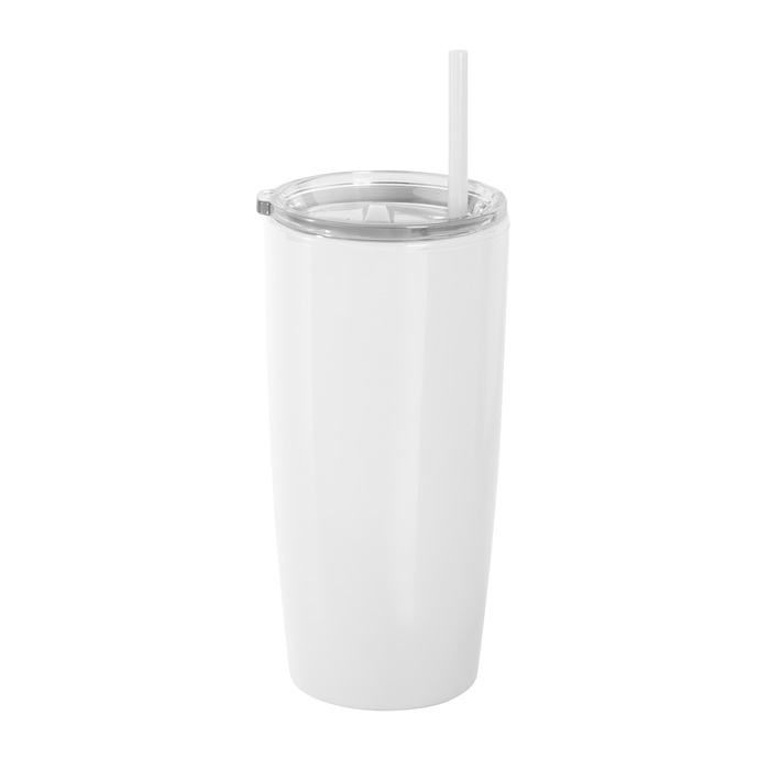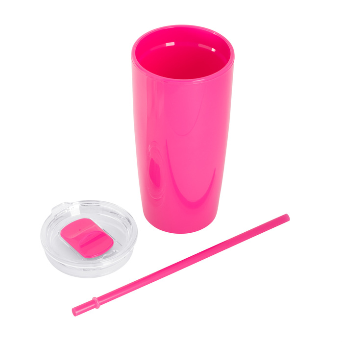 Mug doble pared con popote. Tapa plástica transparente a presión con anillo de silicona. Popote de polipropileno y cierre deslizante del mismo color que el cuerpo. Cuerpo con acabado brillante.