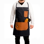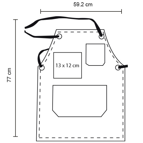 Delantal con doble bolsa en la parte inferior, una en la parte superior y correas ajustables.