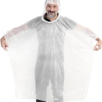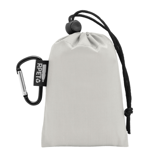 Poncho impermeable. Presentación en bolsa de RPET de diferentes colores con cierre ajustable y mosquetón de aluminio color negro.