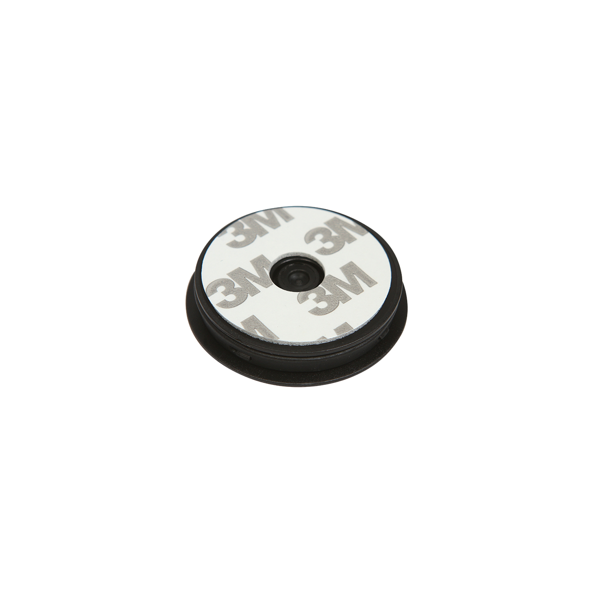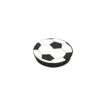 Accesorio para celular fabricado en plástico, de forma circular con diseño de futbol, con adhesivo que funciona también como agarradera de mano.