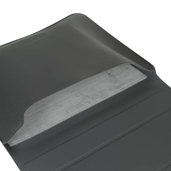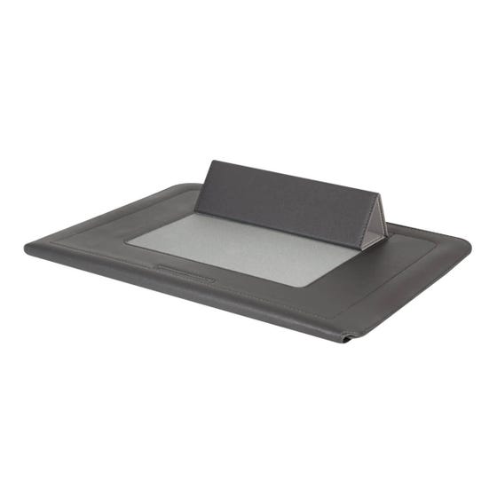 Funda para laptop de hasta 15″. Su diseño se dobla ingeniosamente para convertirse en un soporte ergonómico, permitiéndote trabajar de manera más cómoda en cualquier lugar. El cierre con solapa magnética asegura un acceso rápido y fácil, mientras que el interior aterciopelado brinda un extra de cuidado, manteniendo tu dispositivo libre de rayones. Por su diseño compacto y ligero es perfecto para llevar en cualquier bolso o mochila.