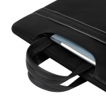 Portafolio fabricado en curpiel con diseño elegante y funcional, compartimento para laptop de hasta 15’’. Diseño elegante Cuenta con un compartimiento principal con cierre y forro suave para proteger de golpes o rayaduras. Además, agrega un práctico estuche con asa para guardar artículos esenciales. Su asa removible y ajustable, te permite llevarlo comodamente. Incluye banda trasera para colocar en trolley, lo que lo hace perfecto para viajes de negocios.