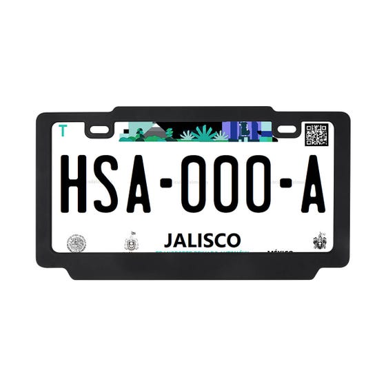 Marco de plástico para matrícula de automóvil. Diseñado para no obstruir el código QR de las placas vehículares.