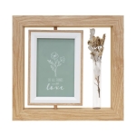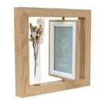 Su diseño elegante y atemporal, resaltará la belleza de tus fotos favoritas. Contiene un marco giratorio, con capacidad para fotografías de 10 x 15 cm y un recipiente de vidrio con flores secas. Añade un toque cálido y natural a tus espacios. Incluye caja individual.