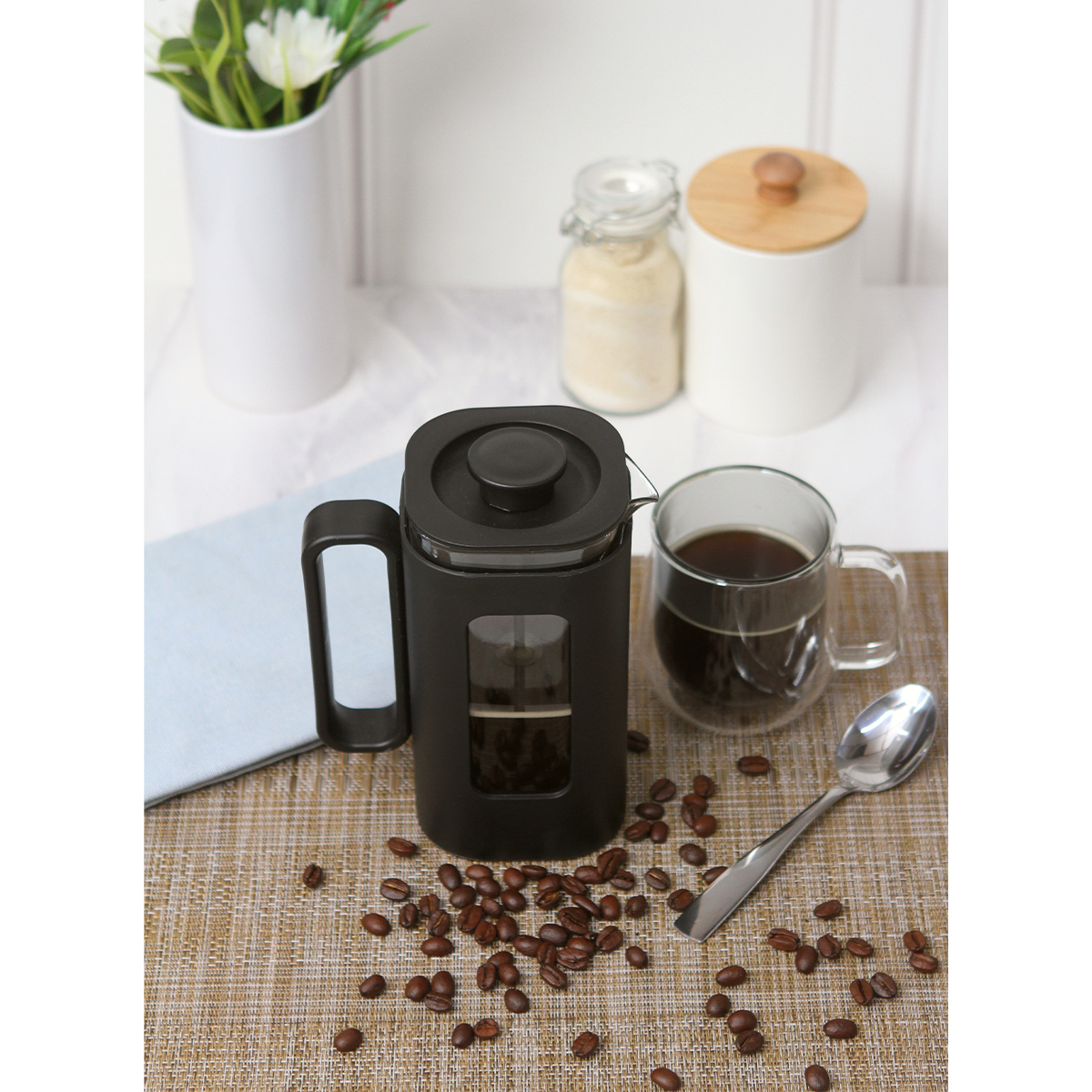 Prepara un café lleno de sabor y aroma con esta elegante prensa francesa de 600 ml, ideal para los verdaderos amantes del café. Fabricada con vidrio de borosilicato resistente al calor, mantiene la temperatura adecuada sin alterar el sabor de tu bebida. Cuenta con una cubierta de polipropileno que facilita su manejo y un filtro de acero inoxidable que garantiza una extracción limpia, sin residuos. Perfecta para el hogar, la oficina o cualquier momento en el que quieras disfrutar de un café recién hecho con estilo y calidad.