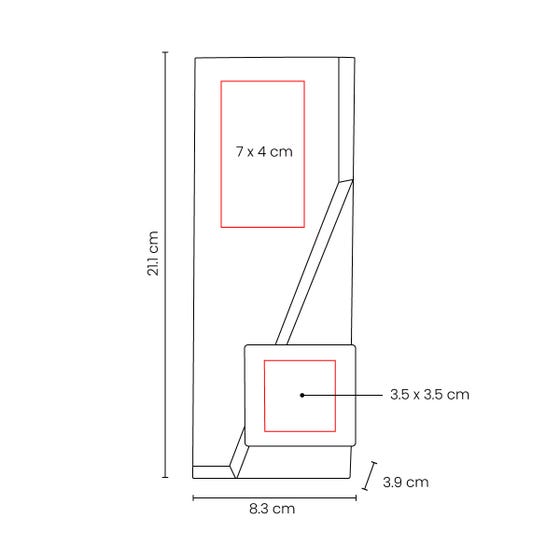 Tamaño: Caja 12 x 24.2 x 5 cm / Reconocimiento 8.3 x 21.1 x 3.9 cm