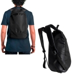 Mochila con compartimento principal, bolsa frontal vertical, asa superior y tirantes con correas ajustables.