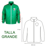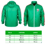 Rompevientos con logo impreso de México, bolsas laterales, resorte en las mangas y gorro plegable oculto en el cuello.