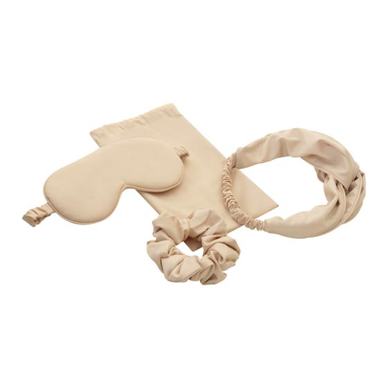 Set de descanso con 3 accesorios. Incluye bolsa con jareta, antifaz ajustable, banda y liga para el cabello. Gracias a la delicadeza de la fibra de bambú, cada pieza es ultra suave al tacto, lo que brinda una sensación de confort inigualable. Perfecto para viajes o para tu rutina diaria, hace que cada momento de autocuidado sea una experiencia placentera.