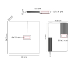 Tamaño: 14.5 x 21 cm Libreta / 1.2 x 13.6 cm Bolígrafo / 22 x 24.5 x 2.8 Caja