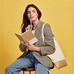 Set ecológico fabricado con materiales amigables con el medio ambiente. Incluye libreta con cubierta rígida, 80 hojas a rayas, elástico para cerrar y elástico porta bolígrafo. Bolsa de algodón estilo tote. Bolígrafo de cartón con sistema push. Presentado en caja de cartón tipo regalo.