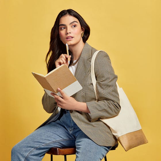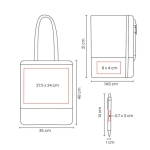 Tamaño: Caja 28.8 x 22.2 x 5 cm / Bolsa 35 x 40 cm / Libreta 14.5 x 21 cm / Bolígrafo 1 x 14 cm