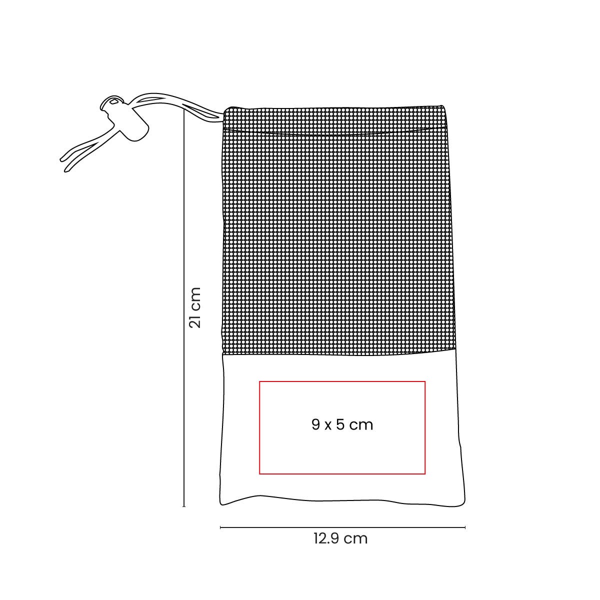 Tamaño: 12.9 cm x 21 cm Bolsa / 30.5 cm x 4.9 cm Banda / 2.70 m Cuerda