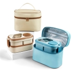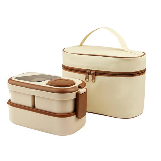 Set de lonchera y portaviandas. Incluye contenedor de alimentos con triple compartimento, capacidad total de 1.6 litros. Su tapa cuenta con asas plegables que facilitan su transporte, además, una práctica cuchara tenedor y un mini recipiente para aderezos. Su lonchera es el complemento perfecto, fabricada en poliéster con interior de aluminio. El compartimento principal, cuenta con un cierre seguro y un bolsillo interior de malla, para guardar objetos pequeños. Apto para microondas o lavavajillas. Capacidad para 6 latas.