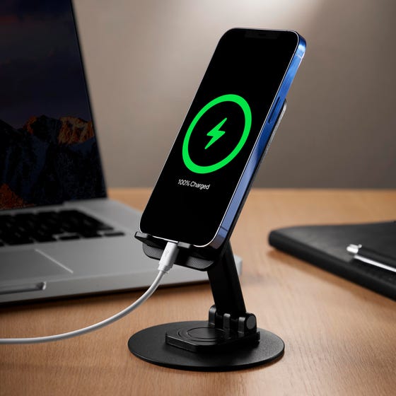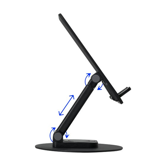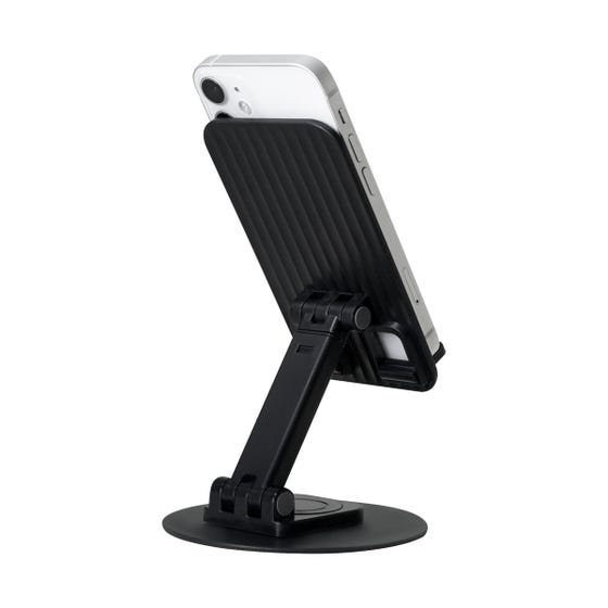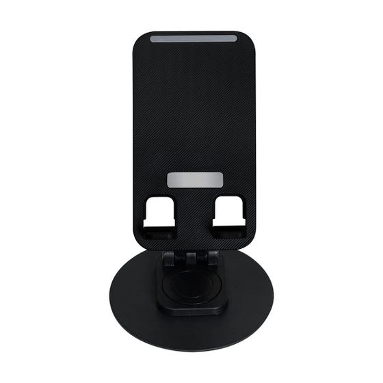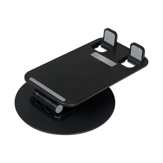 Soporte universal con diseño plegable. Incluye una base giratoria de 360° que permite un fácil ajuste y personalización, lo que garantiza un ángulo de visión cómodo para el usuario. Desplegable a una altura máxima de 20 cm. Incluye caja individual.