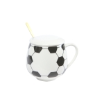 Dale un toque deportivo a tus momentos de café con esta taza de cerámica con diseño de fútbol, ideal para los fanáticos de este deporte. Con una capacidad de 380 ml, es perfecta para disfrutar de café, té, chocolate caliente o tu bebida favorita. Incluye una tapa de cerámica que ayuda a mantener la temperatura por más tiempo y una elegante cuchara de acero inoxidable, ideal para mezclar con estilo. Su diseño temático la convierte en un regalo ideal o en un accesorio divertido para casa u oficina. ¡Combina funcionalidad, estilo y pasión futbolera en cada sorbo!