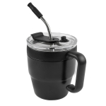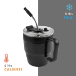Doble pared. Cerrado al vacío. Pared interna y externa de acero inoxidable. Tapa push de plástico con sobre tapa de silicón removible y ranura especial con tapón para popote. Incluye popote metálico con boquilla de silicón. Mantiene temperatura caliente 6 hrs y temperatura fría 8 hrs aproximadamente. Incluye caja individual.