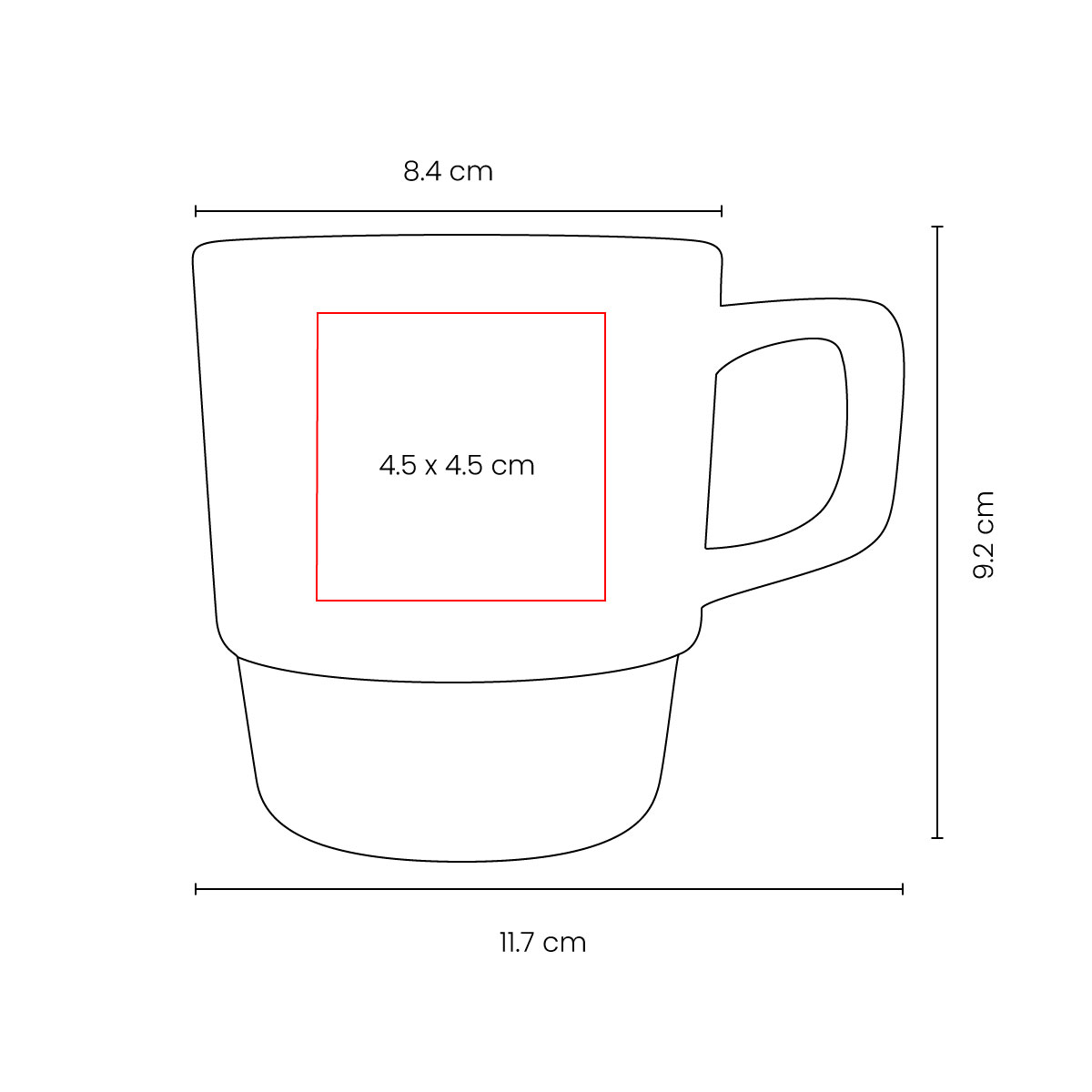 Taza de cerámica con acabado mate y una base texturizada en rayas que aporta un toque sutil y elegante al diseño. Capacidad de 300 ml. Venta caja cerrada de 36 piezas.