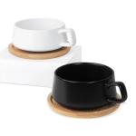Taza de cerámica con plato de bambú. Terminado mate. Su diseño moderno y minimalista combina funcionalidad con un toque de estilo, convirtiéndola en el complemento perfecto para tu cocina, oficina o espacio personal. Incluye caja individual. No usar en microondas ni lavavajillas. El bambú es un producto natural el cual puede presentar variaciones en tonalidades y vetas.