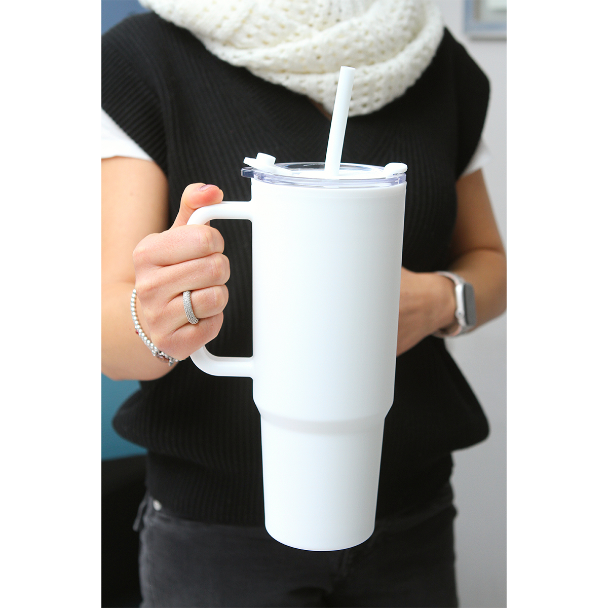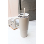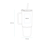 Termo de color sólido fabricado en polipropileno de doble pared. Incluye una tapa a presión de plástico AS con silicón para una mejor hermeticidad. Incluye popote de polipropileno. Capacidad de 1,100 ml. / 37 OZ.