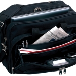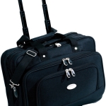 Capacidad 36 litros aprox. Bolso / valija con manija extensible en tres tiempos. Sistema trolley, con ruedas. Compartimento principal independiente. Compartimento acojinado porta notebook. Compartimento con organizador múltiple. Correa desmontable y ajustable con hombrera. Manijas reforzadas. Cierres metálicos. Placa para impresión de logo cambiable.