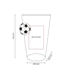 Vaso cervecero de vidro con figura de balón fusionada al cuerpo. Diseño divertido y original que resalta la pasión futbolera. Capacidad de 16 Oz. Base de 6.5 cm de diámetro. Incluye caja individual.