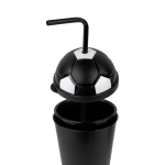 Vaso doble pared de plástico equipado con una boquilla especial en la base que realiza la función de trompeta, ya sea utilizando el popote incluido o directamente con la boca, ideal para animar tus momentos favoritos. Tapa de plástico con sistema push y diseño en forma de balón. Popote reutilizable de plástico. Capacidad de 23 Oz. Base de 6.4 cm de diámetro. Incluye caja individual.