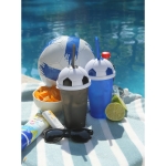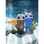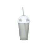 Este vaso de una pared está fabricado en polipropileno, con una estructura ligera y resistente que mantiene su forma. Su cuerpo presenta un diseño cilíndrico de superficies lisas y bordes definidos. Cuenta con una capacidad de 600 ml, ofreciendo un formato amplio y estable para contener líquidos. Incluye una tapa en forma de balón de fútbol, diseñada como una pieza sólida y decorativa que se ajusta al borde del vaso. La tapa integra un popote, alineado de forma central, manteniendo una estructura práctica y bien definida dentro del conjunto.